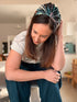 It ties at the back with two elastic straps for a secure yet comfortable fit, sitting beautifully on the head — soft, lightweight, and easy to wear all day.